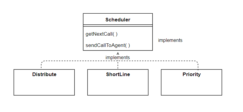 - getNextCall( ) 은 현재 대기 중인 대기열에서 다음 전화 순번인 고객을 가져오는 메서드이고, sendCallToAgent( ) 메서드는 상담원에게 전화를 배분하는 기능을 담당합니다.