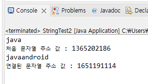 System.out.println("연결된 문자열 주소 값 : " + System.identityHashCode(javaStr));