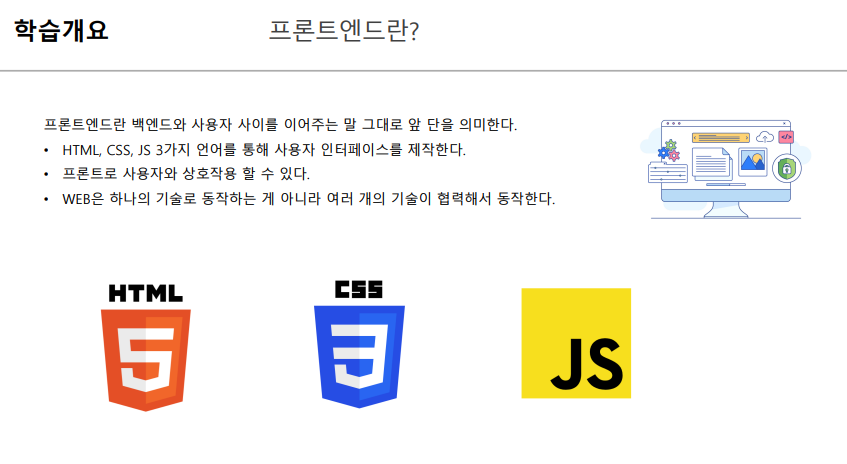 - 이때 UI 를 담당하는 것이 프론트엔드에서 담당을 하고, 다양한 요청들을 처리하는 과정이 백엔드 영역입니다.