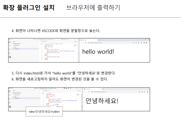 - go live 를 대체하는 extension 에는 live preview 가 있다. vsc 에서 바로 브라우저 화면을 볼 수 있다.