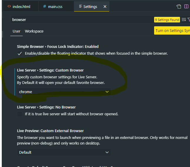 - 만약 go live 를 할 때 chrome 이 실행되지 않는다면, Ctrl 1 를 클릭해서 Setting 을 실행한다.