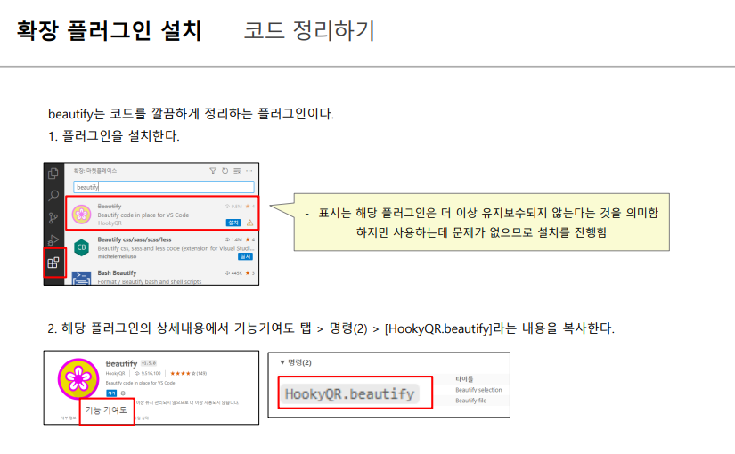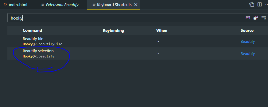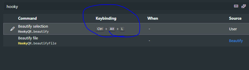 - hooky 라고 검색하면 beautify selection 이 뜨는데, 더블 클릭한다.