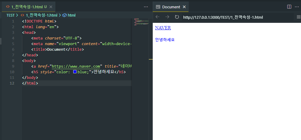 - 태그 마다 사용 가능한 속성이 있느네, 모든 태그에서 사용 가능한 속성이 있다.