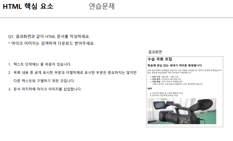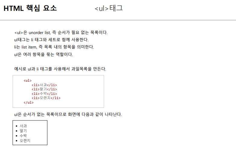 • ul, li 태그는 게시물 목록이나 메뉴를 만들 때 주로 사용합니다.