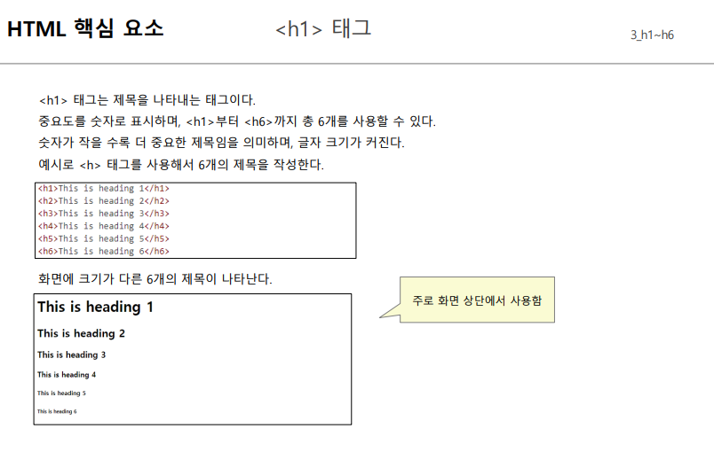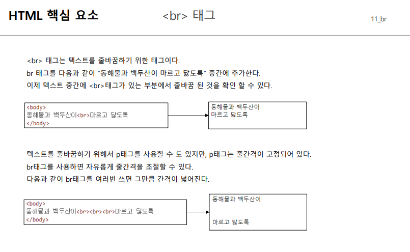 HTML 핵심 요소 { div, h1, p, img, ul, a, span, br }