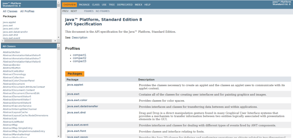 이번 수업에서는 자립의 핵심 기술이라고 할 수 있는 자바의 공식 사용 설명서를 보는 방법을 살펴보겠습니다. 구글과 같은 검색 엔진에서 ‘api documentation java’라는 검색어에 버전을 함께 적어서 검색하면 자바의 공식 사용 설명서 페이지를 찾을 수 있습니다.