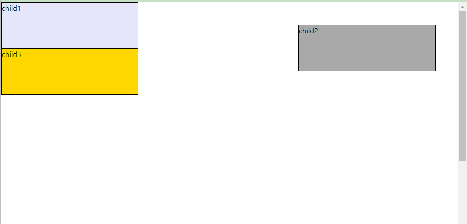 재밌는 점은 relative 와는 다르게 요소 자체가 아예 별도의 존재가 된다. 무슨 말이냐면 child3 는 child2 가 비운 자리를 자연스럽게 올라가서 채웠다는 것이다.