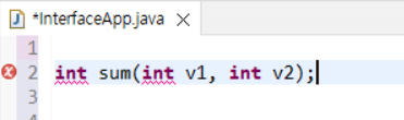 우선 저희는 int v1과 int v2를 매개변수로 활용하는 sum 메서드가 필요합니다. 이 sum 메서드는 출력값도 int 정수여야 하죠. 그 다음에 이 매서드에 이름을 붙여봅시다.