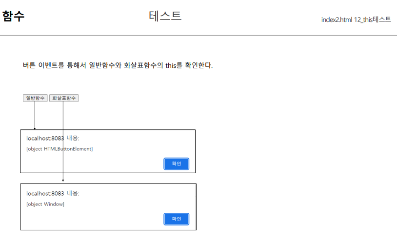 - 일반함수에서 사용되는 this 는 일반 함수를 사용한 객체를 가리키기 때문에