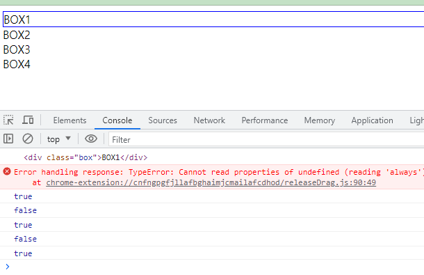 - Box1 을 클릭할 때마다 box1 의 active 클래스가 추가되고 삭제되고 있는 것을 알 수 있고, active 클래스로 설정될 때마다 해당하는 css 가 적용되는 것을 볼 수 있습니다.