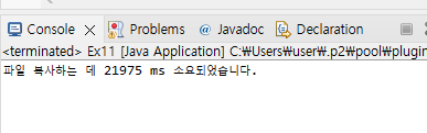 System.out.println("파일 복사하는 데 " + (end - start) + " ms 소요되었습니다.");