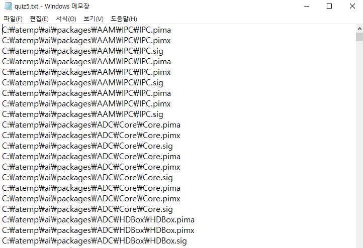 새로운 하위 디렉터리 C:\atemp\ai\packages을 찾았습니다.