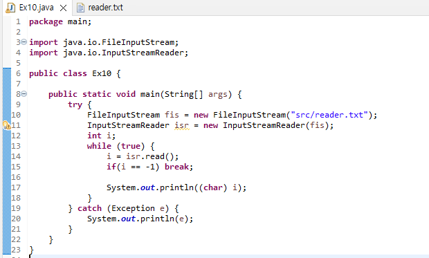 FileInputStream fis = new FileInputStream("src/reader.txt");