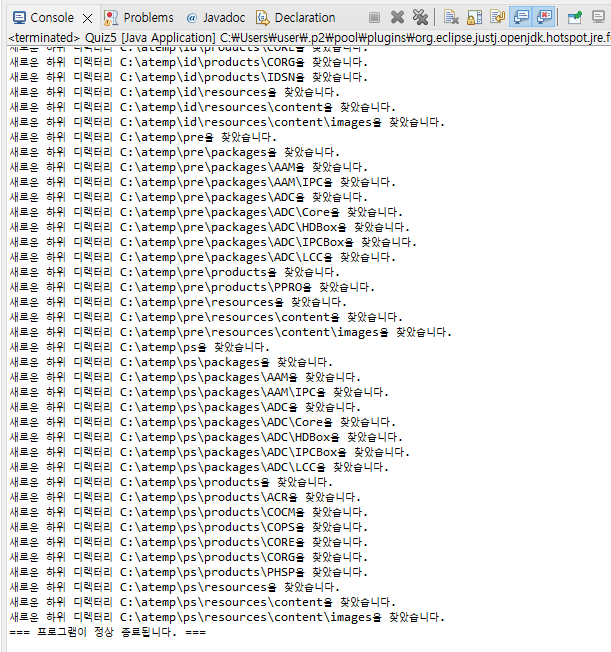출력 값을 보면 모든 하위 디렉터리에 담긴 파일들을 잘 가져온 것을 확인할 수 있다. 여기서 유의 깊게 보아야 하는 것은 출력 결과인데, 함수의 동작 과정인 스택 메모리의 FILO 의 특징이 잘 보인다.