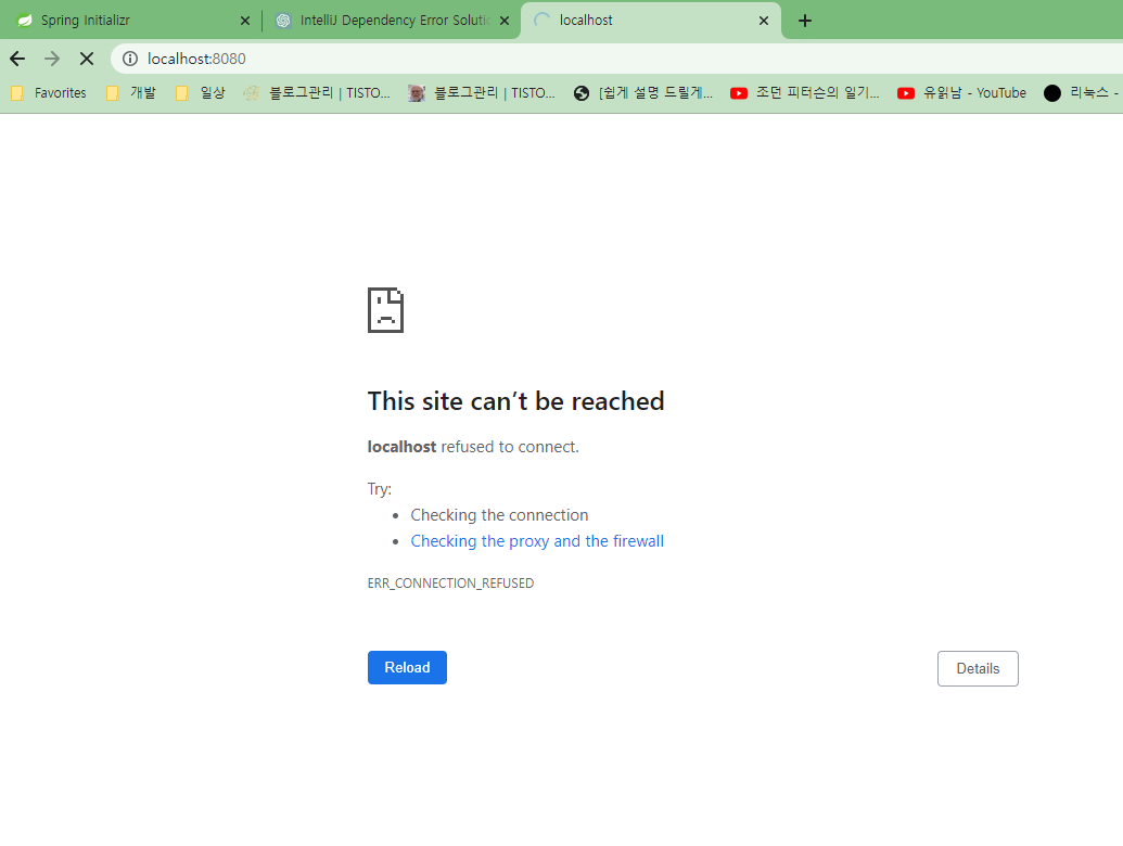 IntelliJ 에서 정지 버튼을 누르고 다시 localhost:8080 으로 접속을 하면
