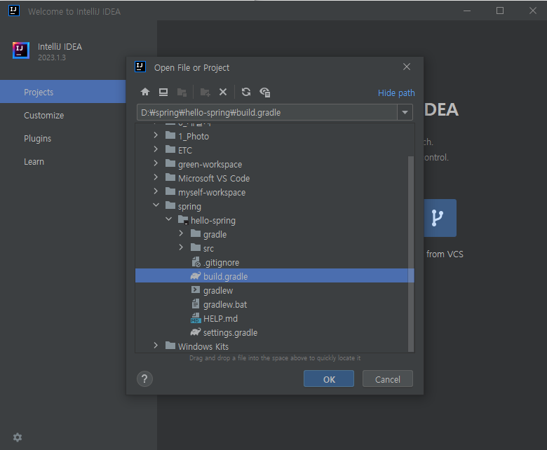 이거를 IntelliJ 에서 Open 을 클릭해서 우리가 Open 할 파일을 지정해줘야 합니다.