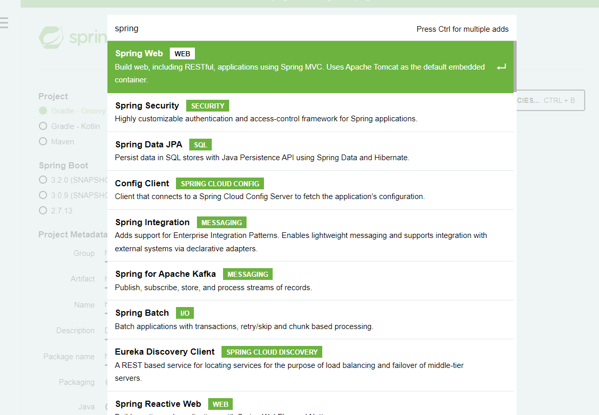 이곳은 스프링을 기반으로 프로젝트를 시작할 수 있게끔 해주는 사이트입니다.