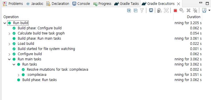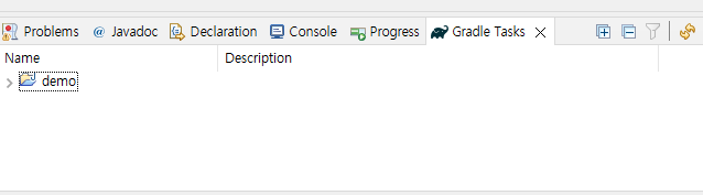 perspective 검색 창에 gradle 을 검색한다. gradle tasks 를 선택하면 다음과 같은 화면을 보게 된다.