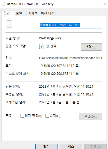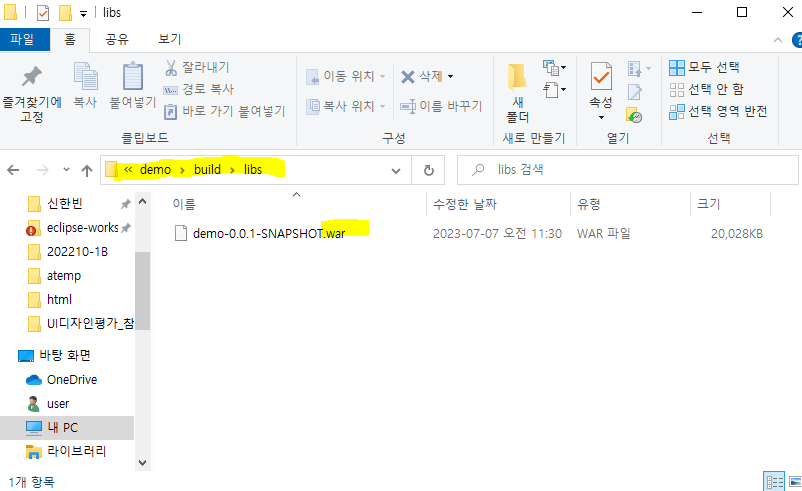 libs 로 들어가보면 .war 로 확장자가 설정되어 있는 것을 확인할 수 있다.