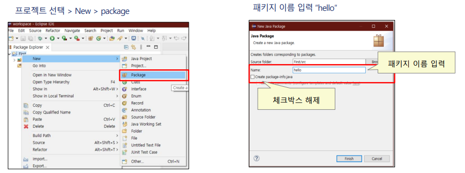 이번에는 프로젝트 밑에 hello라는 이름의 패키지를 생성한다.