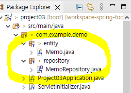 Spring Data JPA 개발에는 두 종류의 코드가 필요하다. 테이블 정보를 가지는 엔티티 클래스와 엔티티객체 처리 기능을 가진 Repository 가 필요하다. 유의사항이 하나 있다. 두 클래스의 패키지를 꼭 구분시켜주어야 한다. 또한 패키지 명은 마음대로 정하는 것이 아니라 정해진 이름대로 작업을 해야 협업이 가능해진다.entity(테이블 정보를 가짐) 에는 클래스 파일을 생성해서 넣어주고 repository(앤티티객체를 처리하는 기능을 가짐) 에는 Interface 파일을 생성해서 넣어준다.