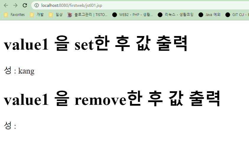 JSTL (JSP Standard Tag Library) { JSTL이란? , 코어태그 : set, remove 예제 }