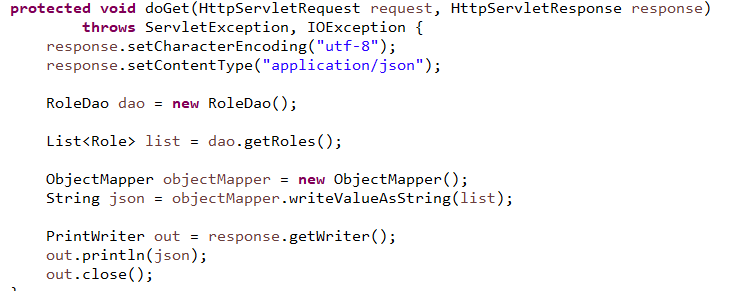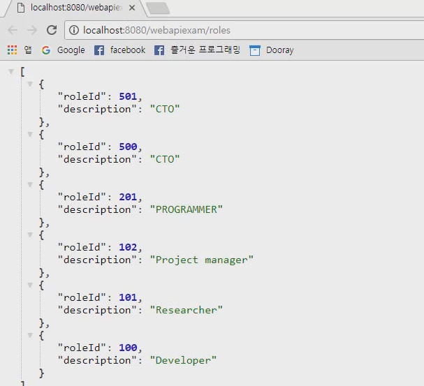 모든 데이터를 보여주는 RolesServlet 을 webapiexam.api 패키지에 추가해주었습니다.