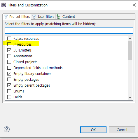 .resources 체크박스를 해제하고 Ok 를 누른다.