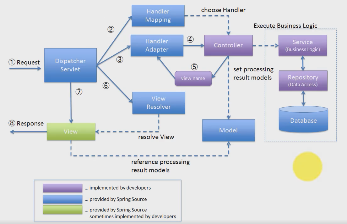 - DispatcherServlet 이 어떤 순서로 동작하는지 이해한다. - DispathcerSerlet 에서 사용되는 컴포넌트(객체)들이 어떤 것들이 있는지 이해한다.