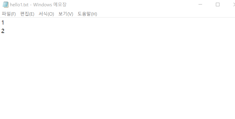 notepad hello1.txt 명령을 통해 txt 파일을 열고 2를 추가해준 후 저장 후 종료합니다. 그리고 나서