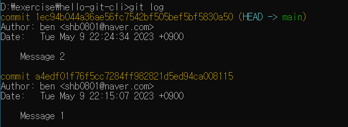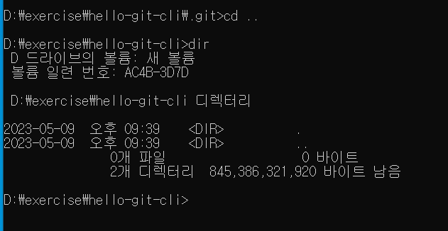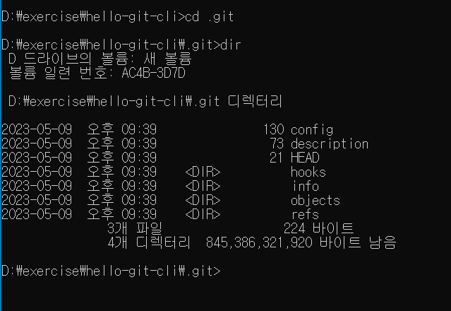 명령으로 hello-git-cli 폴더로 이동한 다음