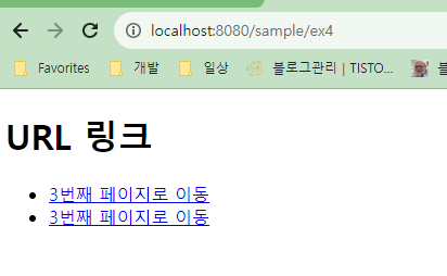 뒤로 가기를 누른 다음에 두 번째 링크를 클릭하면 ex3 페이지로 이동하면서 hello 를 param 으로 전달한 것을 확인할 수 있습니다.