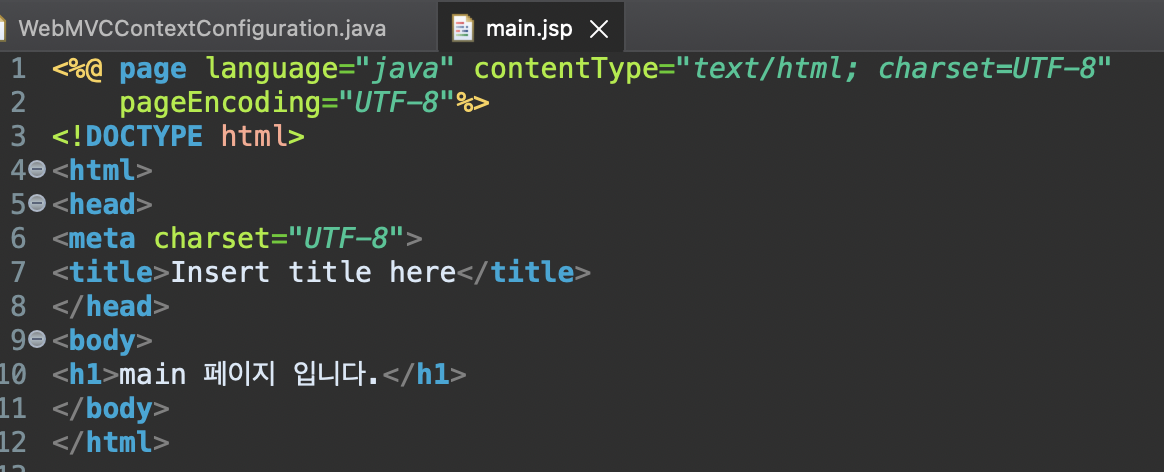 main.jsp 는 테스트 파일이므로 별다른 것은 작성하지 않고 h1 태그 하나만 작성하였습니다.