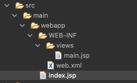 우선 지정된 위치에 views 폴더를 만들고 그 아래에 main.jsp 를 생성하였습니다.