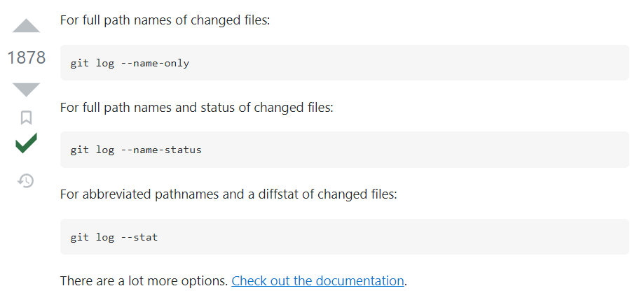 구글에 git log files 라고 검색하고 제일 위에 있는 홈페이지에 들어가서 보니까 어떤 고마운 분이 상세하게 설명을 해주셨네요. 이처럼 우리가 모든 것을 알고 있을 필요는 없습니다. 이용해서 해보죠.