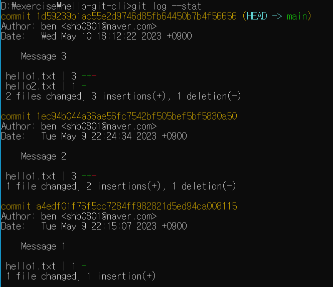 git log를 하면 Message 3 버전이 함께 보이는 것을 알 수 있습니다.