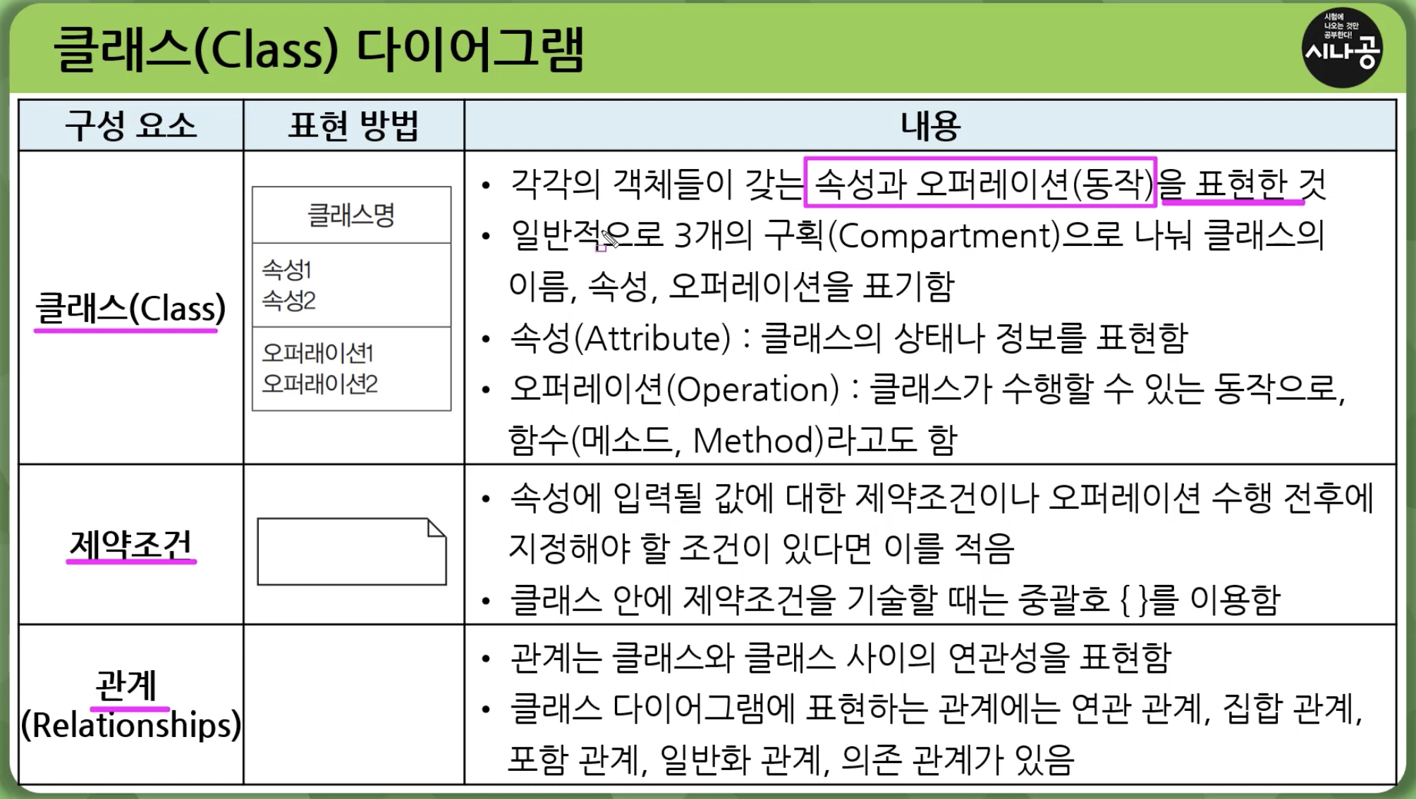 클래스 다이어그램은 위와 같은 구성요소를 갖습니다.