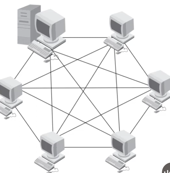 망형은 모든 지점의 컴퓨터와 단말장치를 서로 연결한 형태로, 노드의 연결성이 높은 특징이 있습니다. 많은 단말장치로부터 많은 양의 통신을 필요로 하는 경우에 유리합니다. 인터넷 망 자체가, 이러한 망형 형태로 구성이 되어 있습니다. 통신 회선의 총 경로가 가장 길 수 밖에 없으며, 통신 회선 장애가 발생해도 다른 경로를 통해서 데이터를 전송할 수 있는 특징이 있습니다. 모든 노드를 망형으로 연결하려면 노드의 수가 n 개일 때, n(n-1)/2 개의 회선이 필요하고 노드당 n-1 개의 포트가 필요합니다.