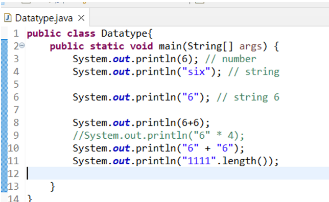 이런 식으로 데이터 타입을 확인해 볼 수 있습니다. 오늘 우리는 Java에서 제일 중요한 데이터 타입 두 가지를 배웠습니다. 문자열과 숫자입니다.