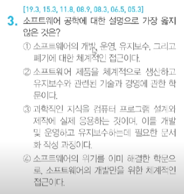 - IEEE(전기/전자기술협회)는 소프트웨어의 개발, 운용, 유지보수 및 파기에 대한 체계적인 접근 방법이라 정의하였다.