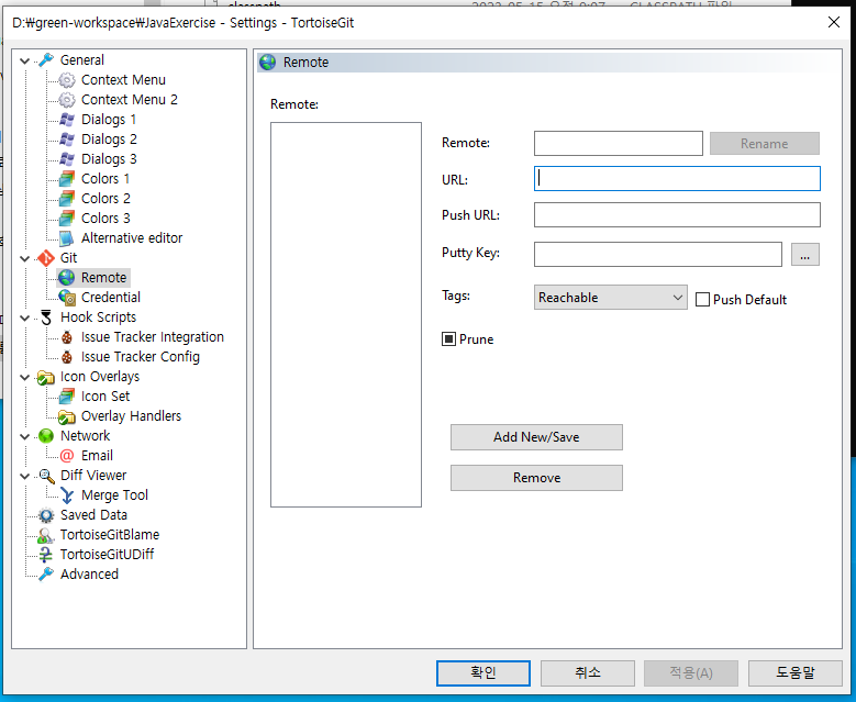 - 그 때 사용하는 방법에는 여러가지가 있는데 TortoiseGit 을 사용해보겠습니다. (TortoiseGit 이 설치되어 있지 않다면 구글에 검색후 설치해주세요)