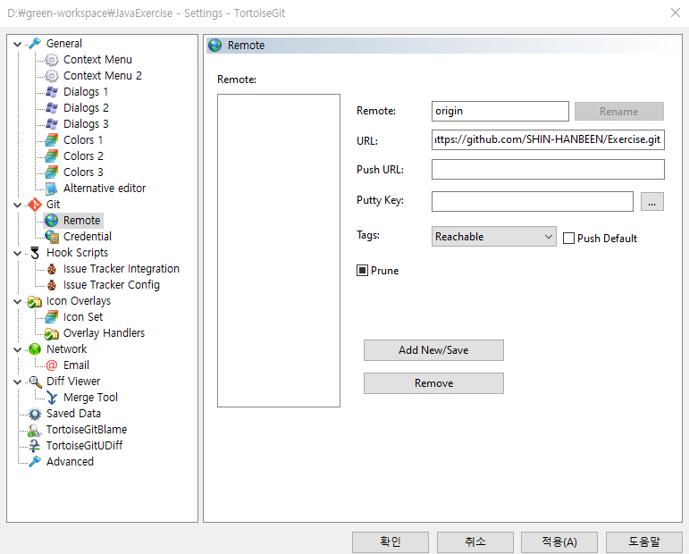 - GIt - remote 부분에 들어갑니다.