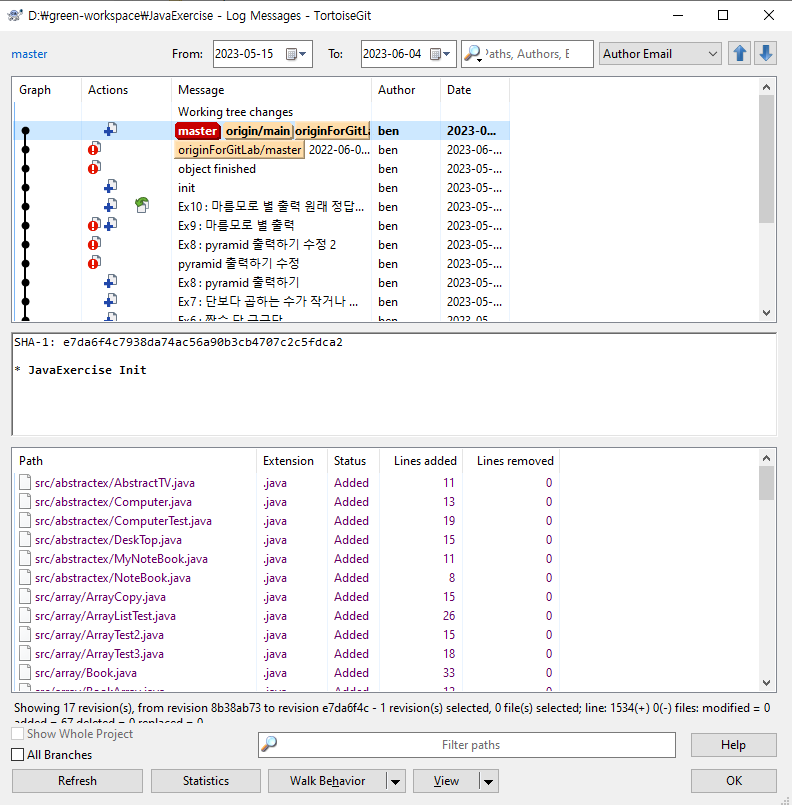 - Pull 을 클릭하면 원격 저장소의 있는 버전을 가져올 수 있습니다.