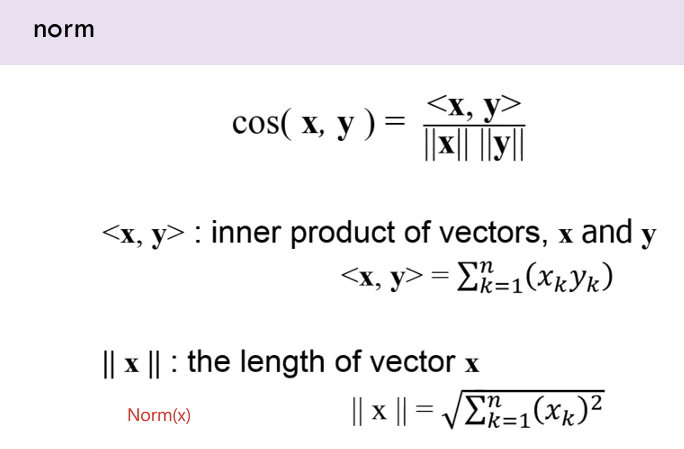 예시를 들면 위와 같습니다. Norm 이라는 증명된 공식으로 유사도를 검색해볼 수 있습니다.