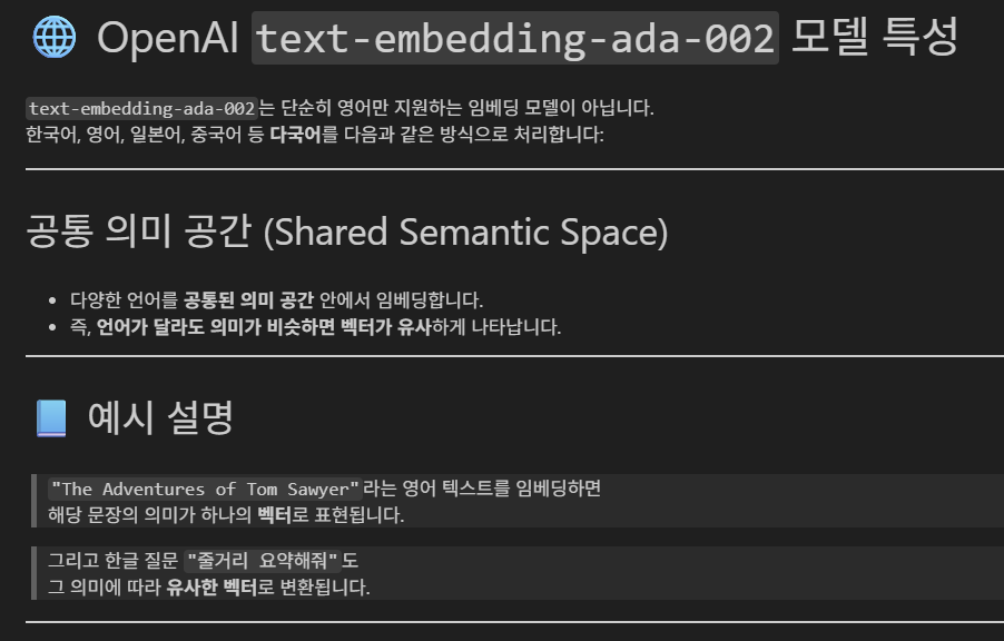 LLM 이 제공해주는 임베딩 모델의 특징 : 다국어
