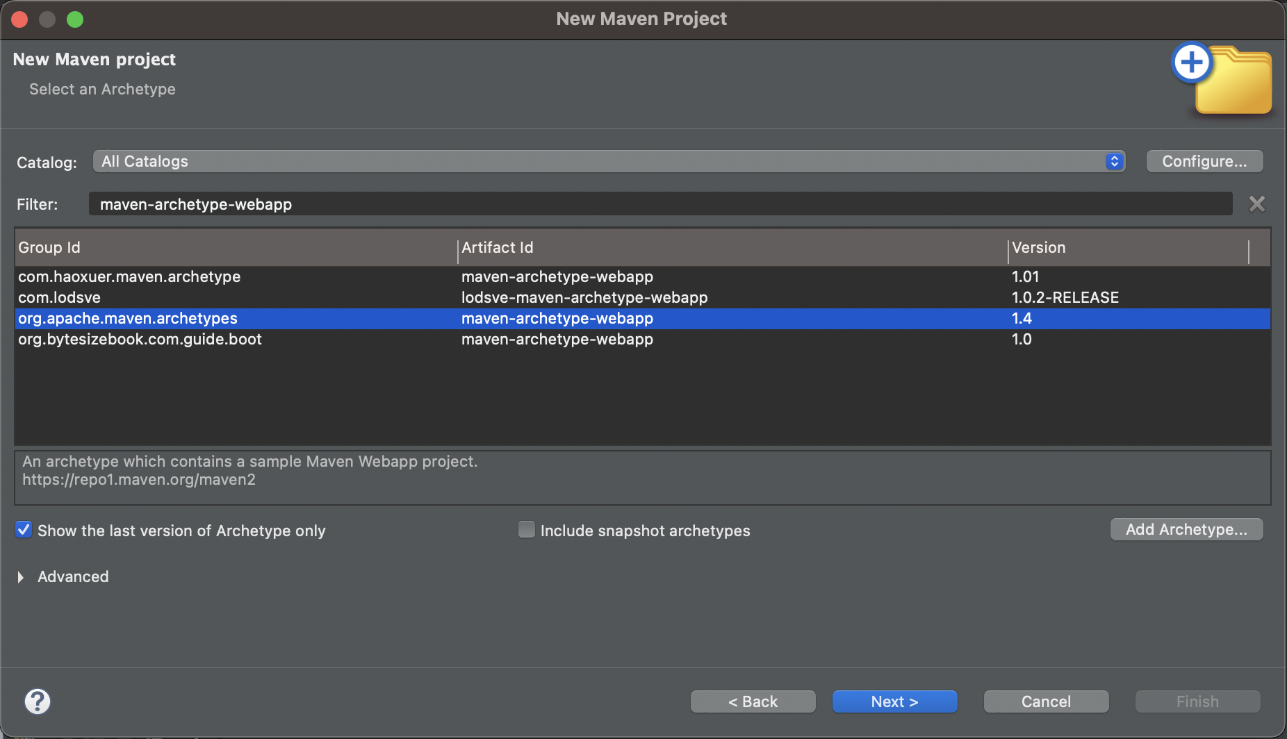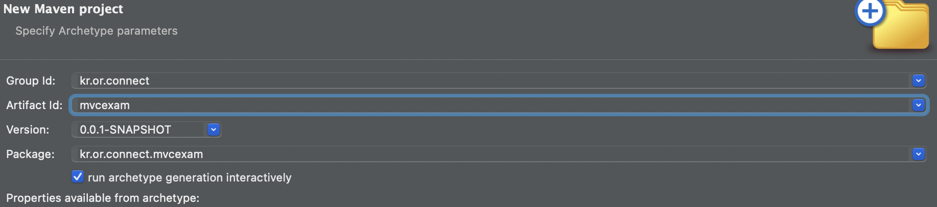 archetype 을 설정해주고 next 를 누릅니다.