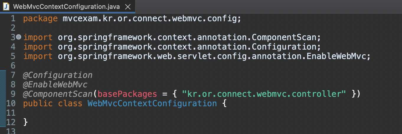 -) @Configuration : 이 어노테이션으로 인해서 Java Config 파일이구나라는 것을 알려줍니다.