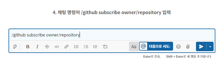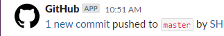 more - apps 에서 github 설치. Apps 에 추가된 git hub 클릭 자신의 계정에 맞게 owner/repository 를 입력하면 된다. github 앱에서 커밋 메시지를 확인할 수 있게 된다.