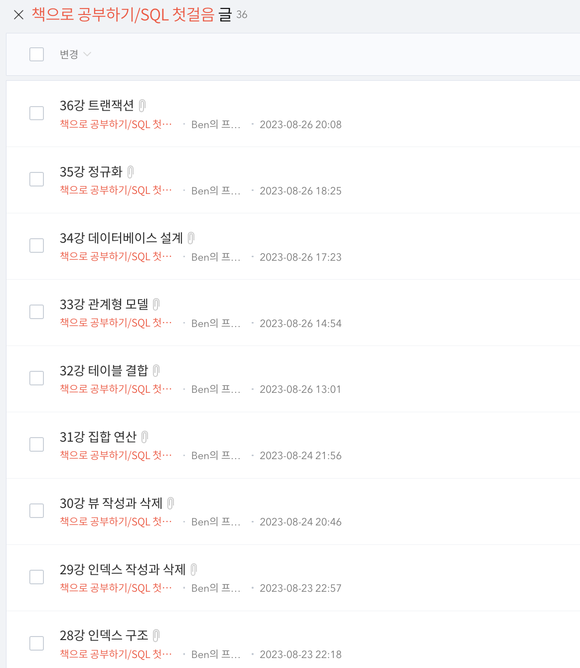 백엔드 공부를 하면서 SQL 을 자연스럽게 쓰게 되었는데, 공부를 할 수 있는 기간이 짧았다. 더 확실하게 기반을 공부하고 싶었고, 같이 공부하는 학우가 추천해준 책이었다.